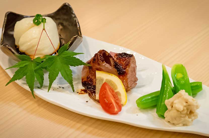 当店では、熊本市内でも珍しい高知の郷土料理である「松葉焼」が楽しめます。香り良い松葉を使って鮮魚やお肉などを一気に焼き上げ、食材の旨味を閉じ込めたまま表面を香ばくコーティング。口の中に入れると独特なスパイシーな風味と食材の旨みが混然一体となる絶品料理です。当店ではコース料理や一品料理で松葉焼ををご提供。ご家庭では再現できないこの味をぜひ一度ご賞味ください。